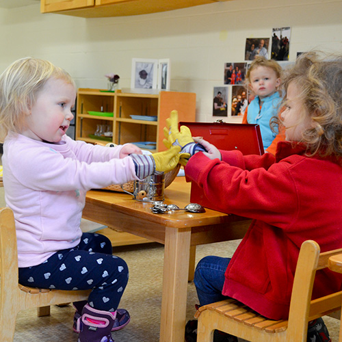 Parent-Infant Bonding Time. Language, Self-Expression, and Motor Skills Development. Supports Natural Curiosity in a Montessori Environment.