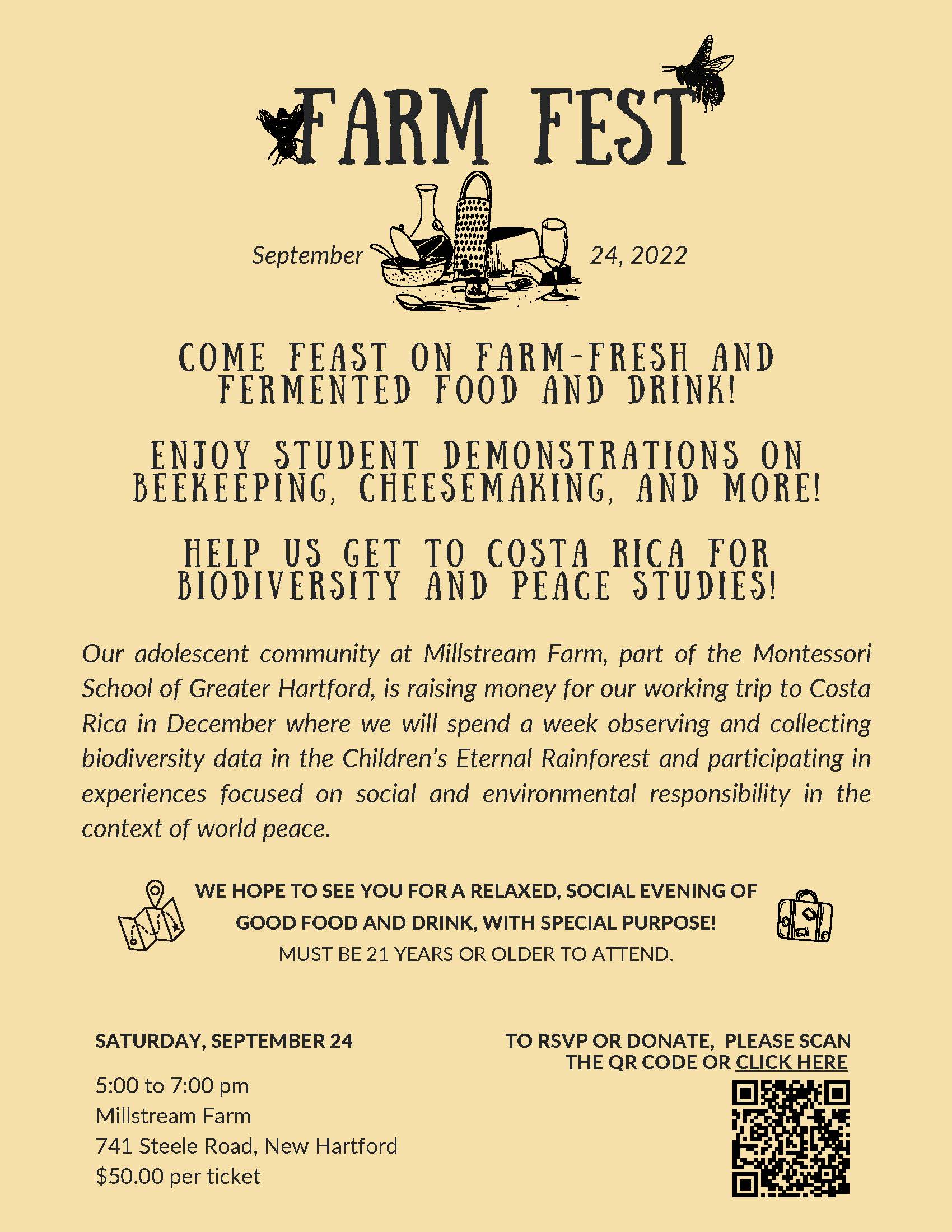The adolescent community at Millstream Farm is raising money for their working trip to Costa Rica in December where they will spend a week observing and collecting biodiversity data in the Children’s Eternal Rainforest and participating in experiences focused on social and environmental responsibility in the context of world peace. MUST BE 21 YEARS OR OLDER TO ATTEND.