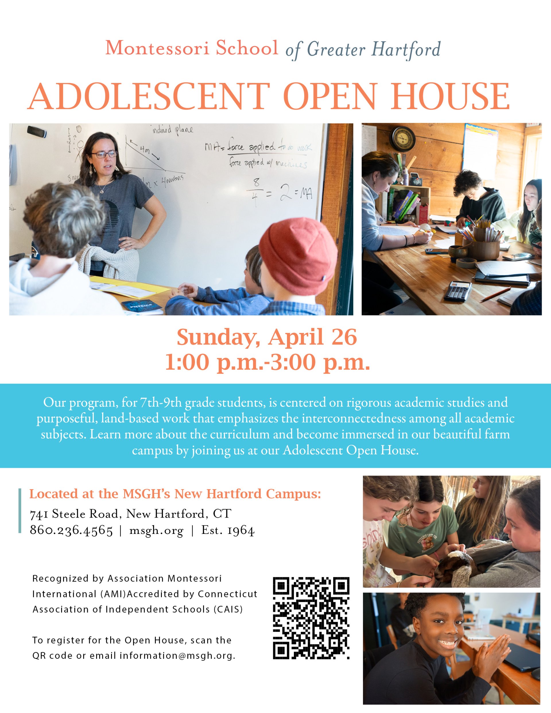 Register below for the upcoming Adolescent Open House, Sunday, April 26, 1-3 p.m.
